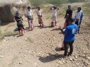 بالتنسيق مع YCO وزعت المنظمة الدولية للهجرة IOM طفايات الحريق لتجمعات النازحين بمخيمات مديرية موزع بعدد 55 طفاية وتدريب فريق لجان مكافحة الحرائق المجتمعية في 14 تجمع لمدة 5 أيام