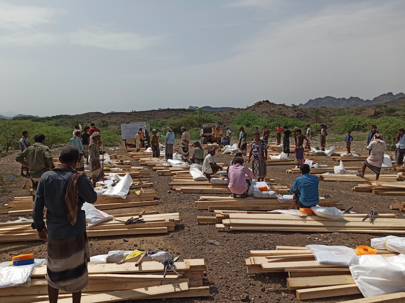 (During the implementation of the #YCO youth creativity Organization for the distribution of emergency shelter for 47 displaced families in the settlements of the Directorate of distributor west of Taiz governorate) with the support of the International Organization for Migration #IOM